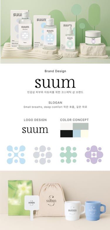 Suum은 호흡의 리듬에서 영감을 얻은 아토피 및 민감성 피부 전문 코스메틱 브랜드입니다. 자극 받은 피부를 진정시키고 균형과 회복을 돕는 루틴을 제안하며, 자연 유래 성분을 바탕으로 순하면서도 효과적인 케어를 지향합니다. 피부와 마음이 편안히 숨 쉴 수 있는 프리미엄 브랜드 경험을 제공합니다.