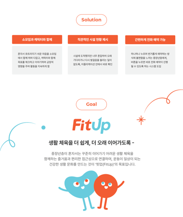 'FitUp'은 중장년층을 중심으로 다양한 세대가 생활체육을 쉽고 즐겁게 사용할 수 있도록 돕는 모바일 서비스입니다.